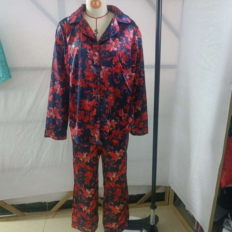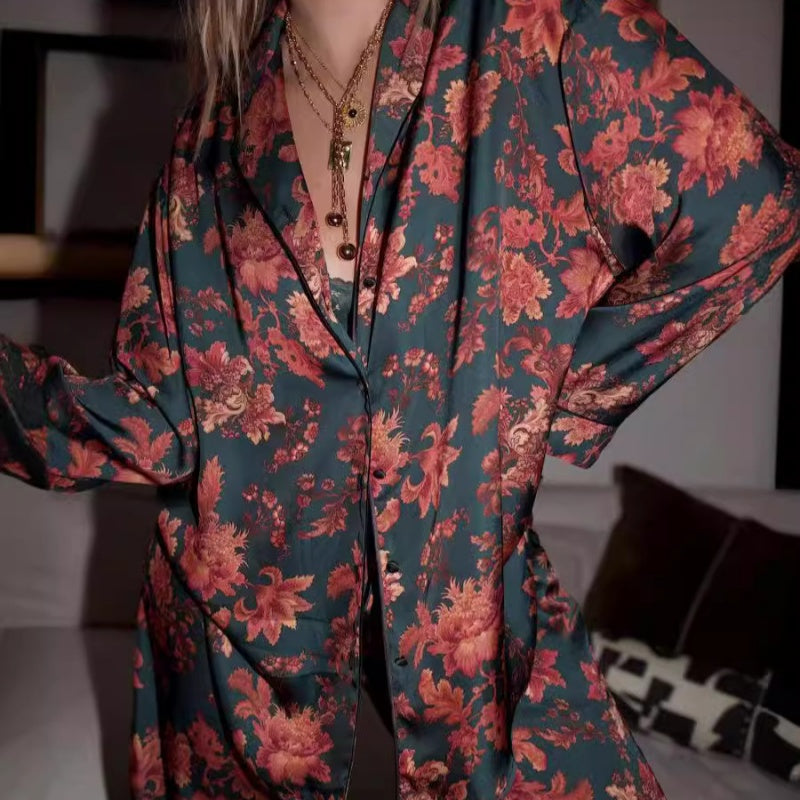 Zweiteiliges Pyjama-Set mit langärmeligem Blumenmuster für Damen, Oberteil und Hose