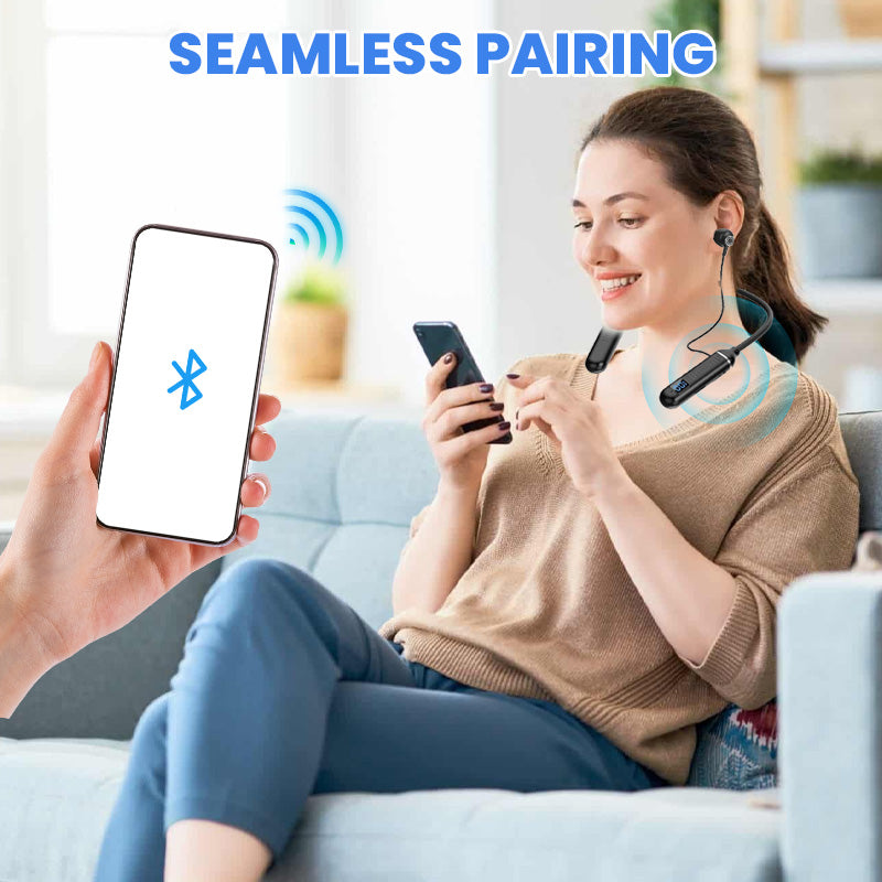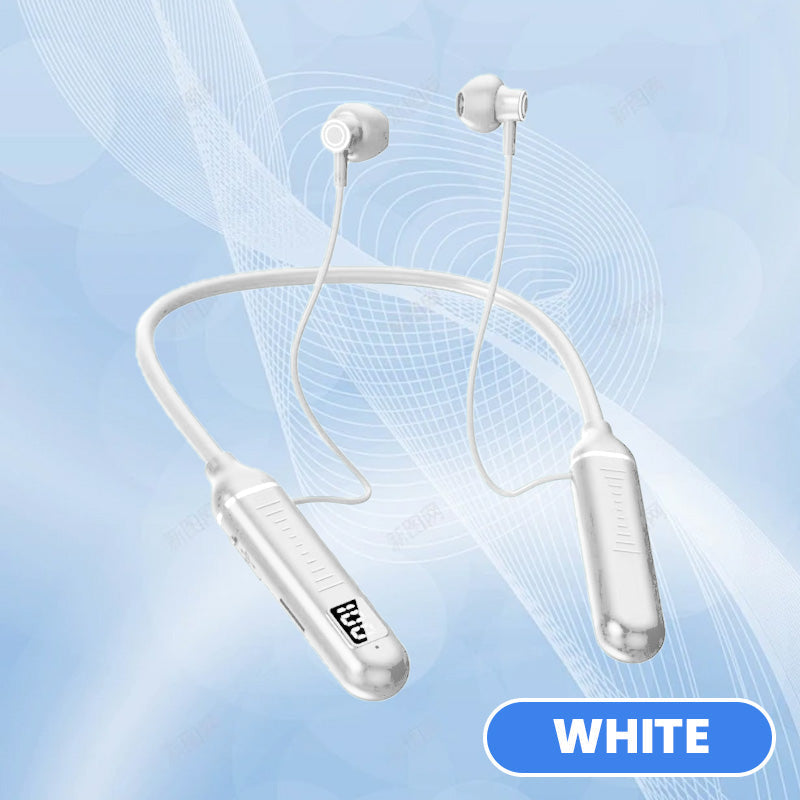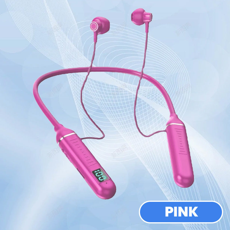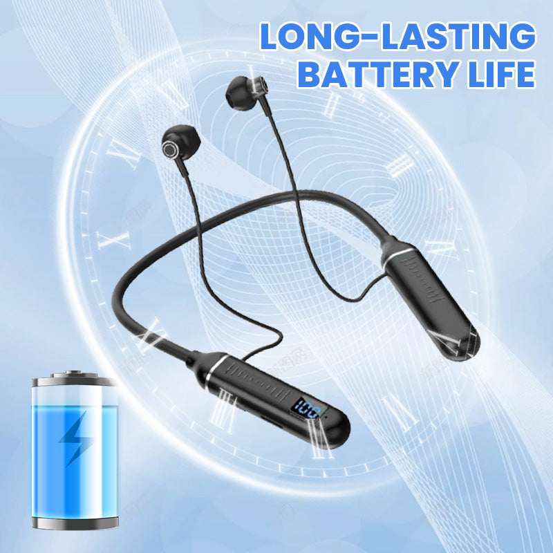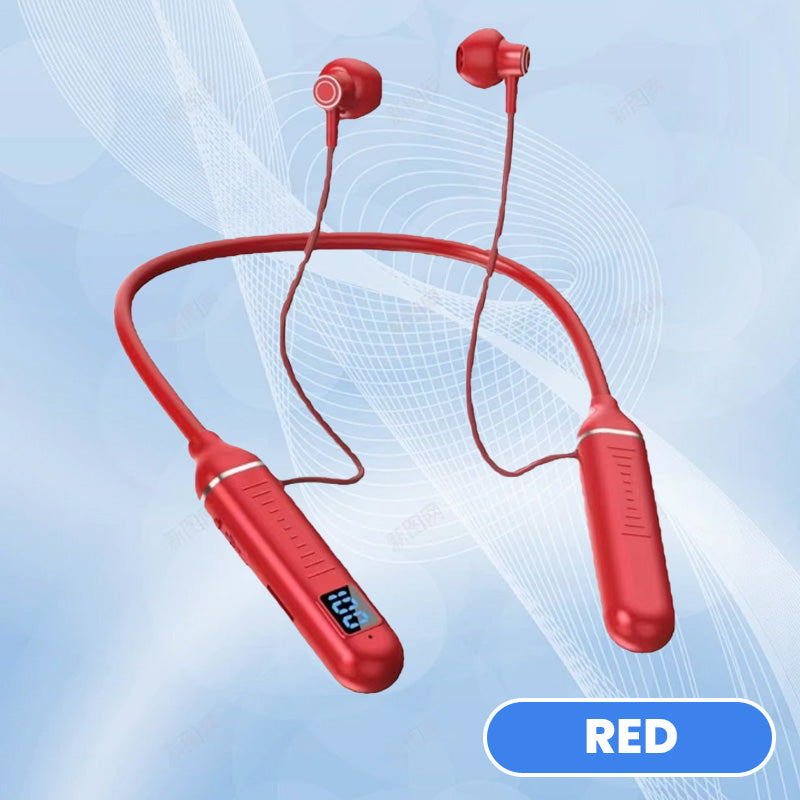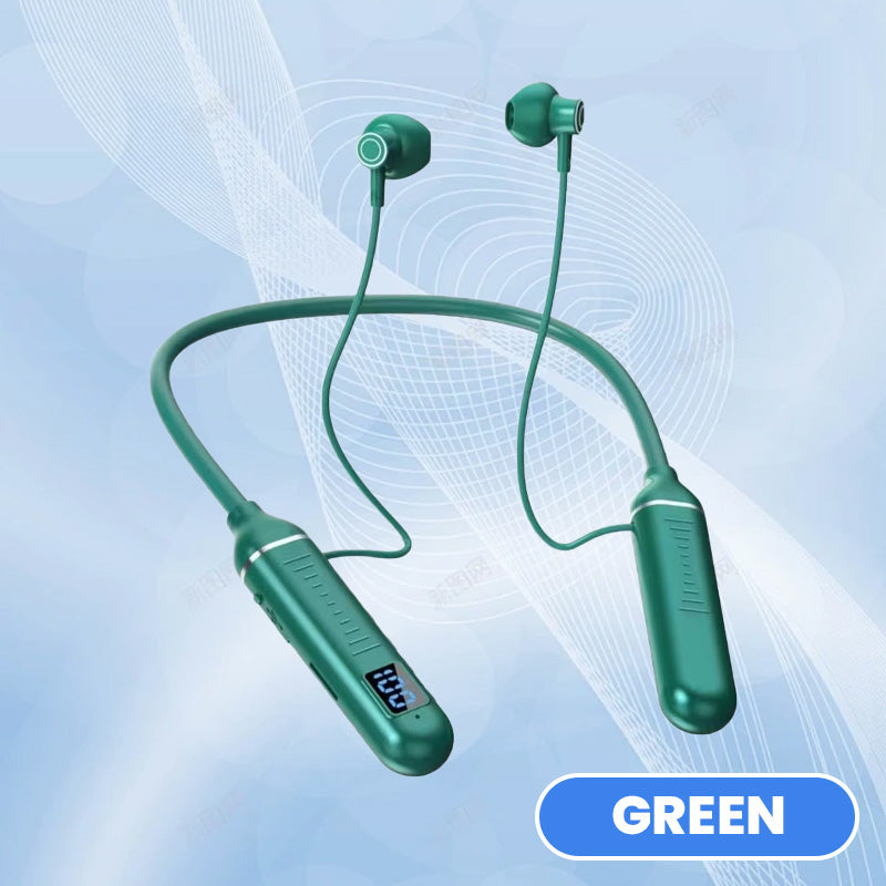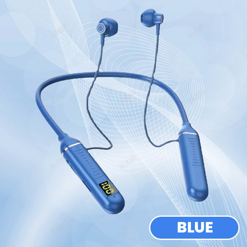 GEÏNTEGREERD DIGITAAL DISPLAY VOOR REAL-TIME INFORMATIE- Onze Nek Bluetooth Earphones zijn uitgerust met een state-of-the-art digitaal display dat real-time informatie geeft over je audio-ervaring. Het heldere scherm met hoge resolutie toont essentiële details zoals de levensduur van de batterij, zodat je op de hoogte blijft zonder constant je telefoon te hoeven controleren.