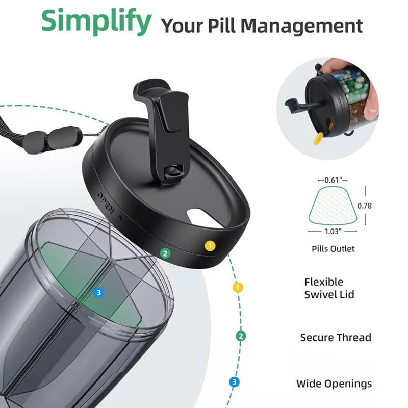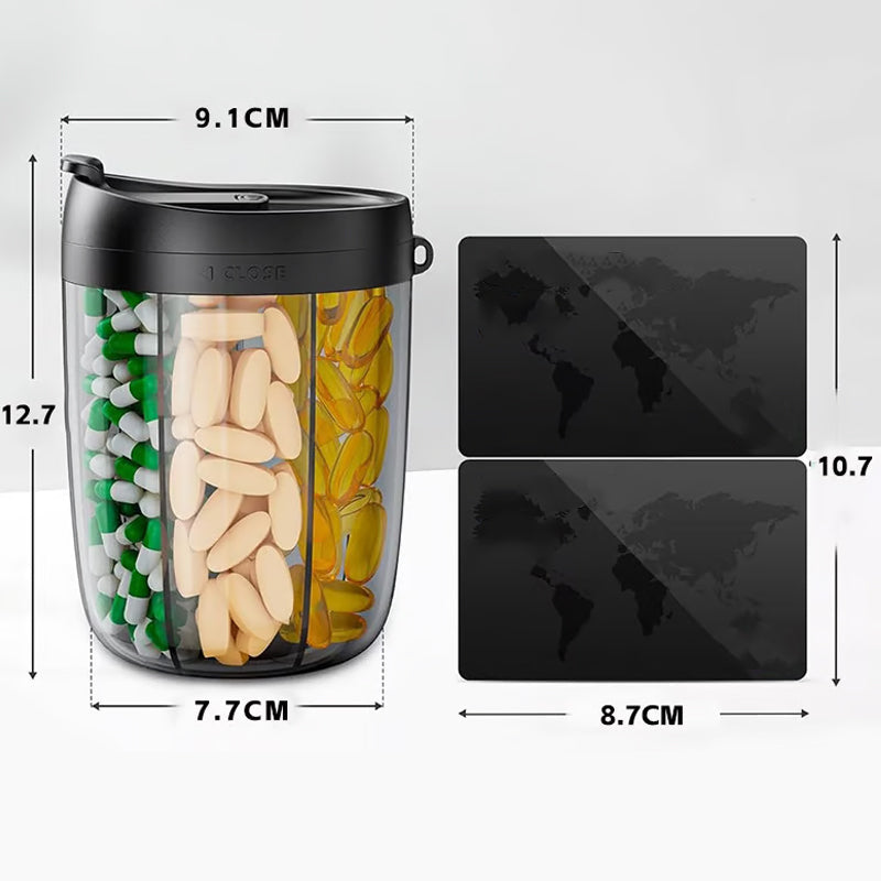 KOMPAKTES UND REISEBEREITES DESIGN: Dieser schlanke und leichte Pillenspender passt mühelos in Taschen, Handtaschen oder Hosentaschen – und ist somit ideal für Reisen, die Arbeit oder das Fitnessstudio.